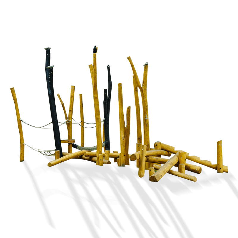 Den utfordrer både balansen og evnen til å bedømme avstander. Formspråket appellerer til barnets indre eventyrer, ettersom tømmerbroen minner om broene som finnes i jungelen i Sør-Amerika.