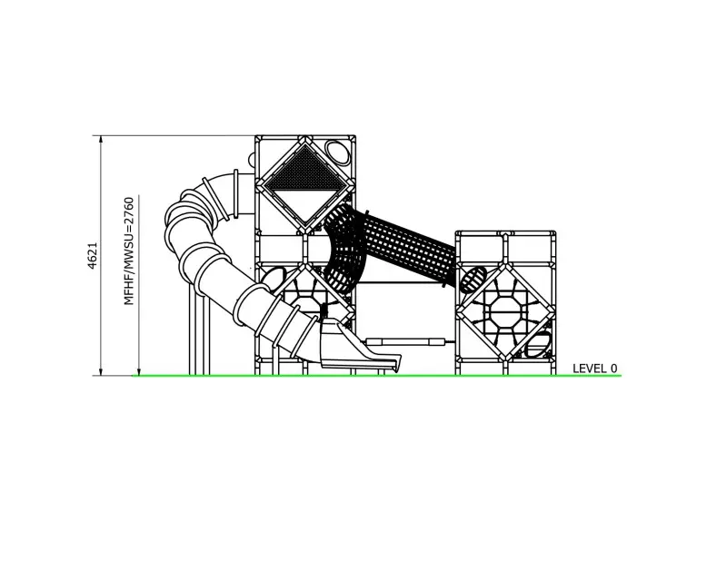 SFERO FOREST 3-1 består av tre sammenkoblede baller og en sklie, designet i farger som komplementerer grønne områder. Anlegget stimulerer barnas fantasi og motorikk gjennom komplekse klatreruter. Det inkluderer ståltunneler, tautunneler, balansetau og flere plattformer. Konstruksjonen er basert på varmgalvanisert stål for maksimal holdbarhet. Fargetema: Beige/brun/grønn (skog).