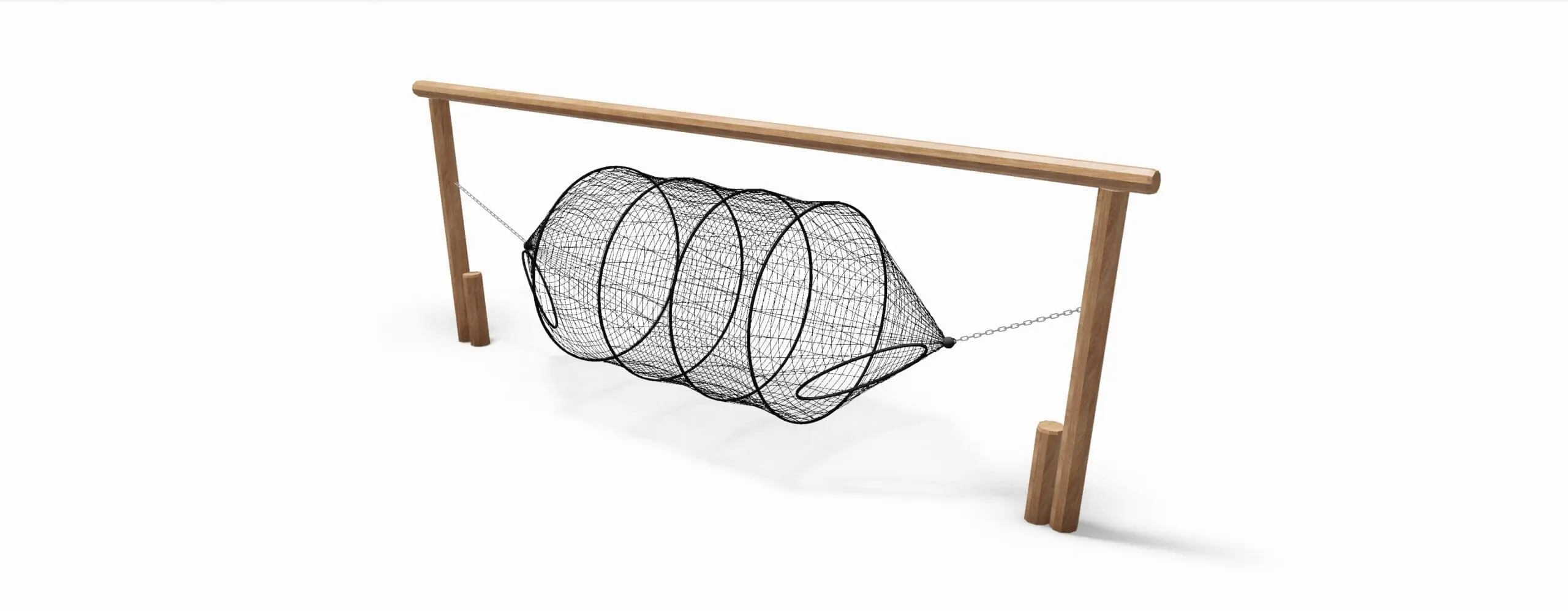 Det er åpninger i begge ender. Her kan du krabbe og svinge deg både inne i «pølserullen», men også på toppen, bare fantasien setter grenser.