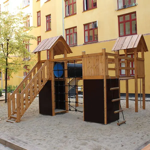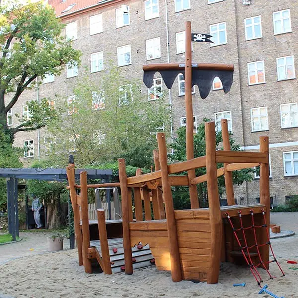 Lekeplassen i Børnehuset Nansensgade er et strålende eksempel på hvordan man kan skape en koselig og varm atmosfære selv i en bakgård.