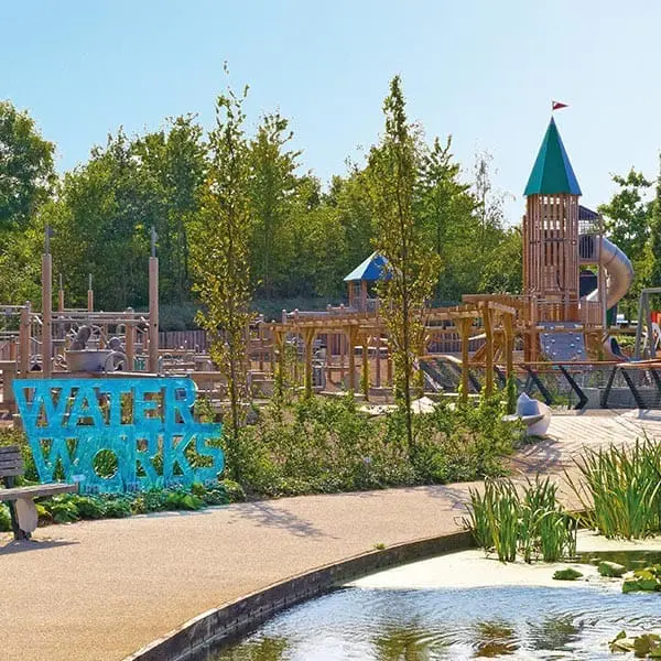Anlegget i Bruksparken i Finspång består av ti flotte, fargerike og spennende vannredskaper som vil inspirere og begeistre barn i alle aldre.
