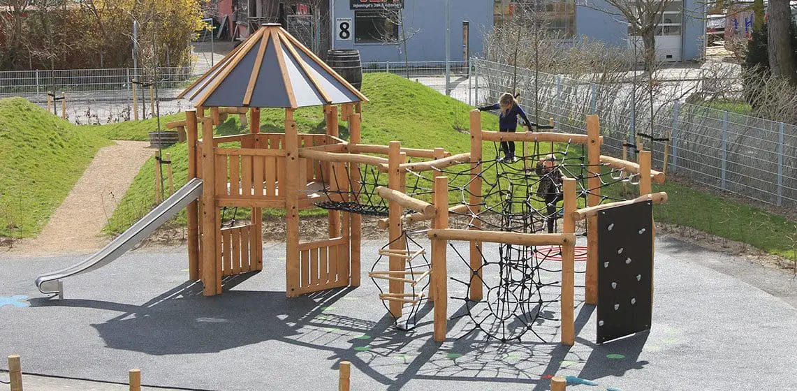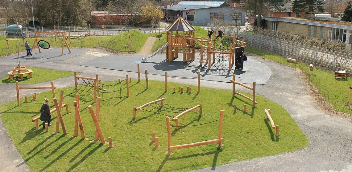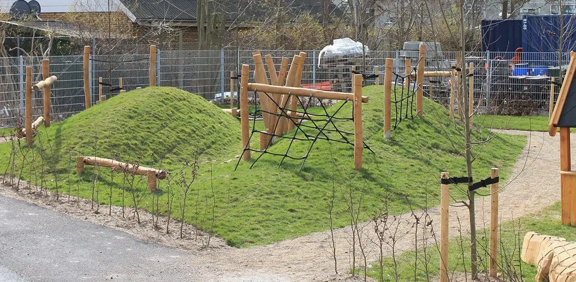 I Amalieparken var det viktig at lekeplassen nådde ut til en bred målgruppe av barn fra 0-5 år. Den skulle sikre at både store og små barn kunne leke seg imellom og samtidig bli utfordret motorisk på ulike nivåer i hele området.