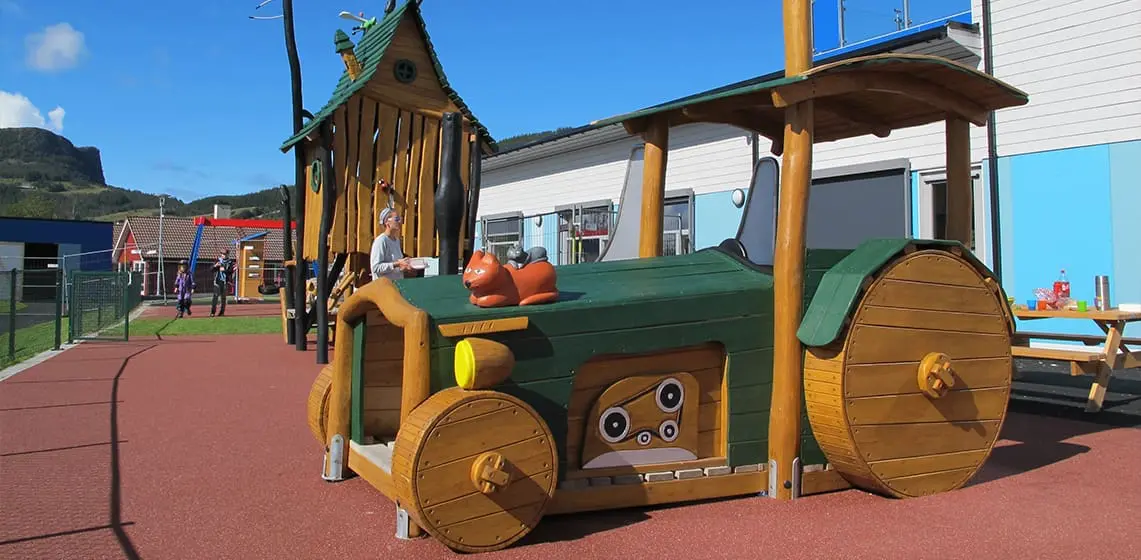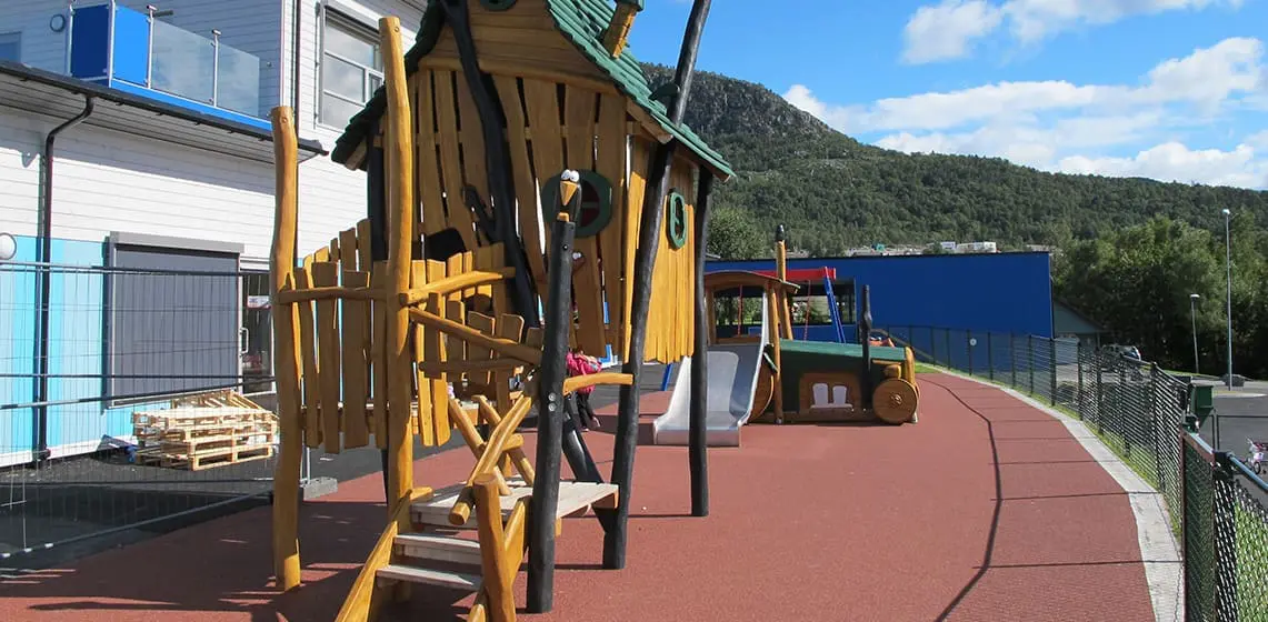 Bekkeveien barnehage på Jørpeland ble ferdigstilt 2015. Eventyrlig lekeutstyr fra Spielart gir barna i alle aldre i barnehagen utfordrende, spennende og variert lek .