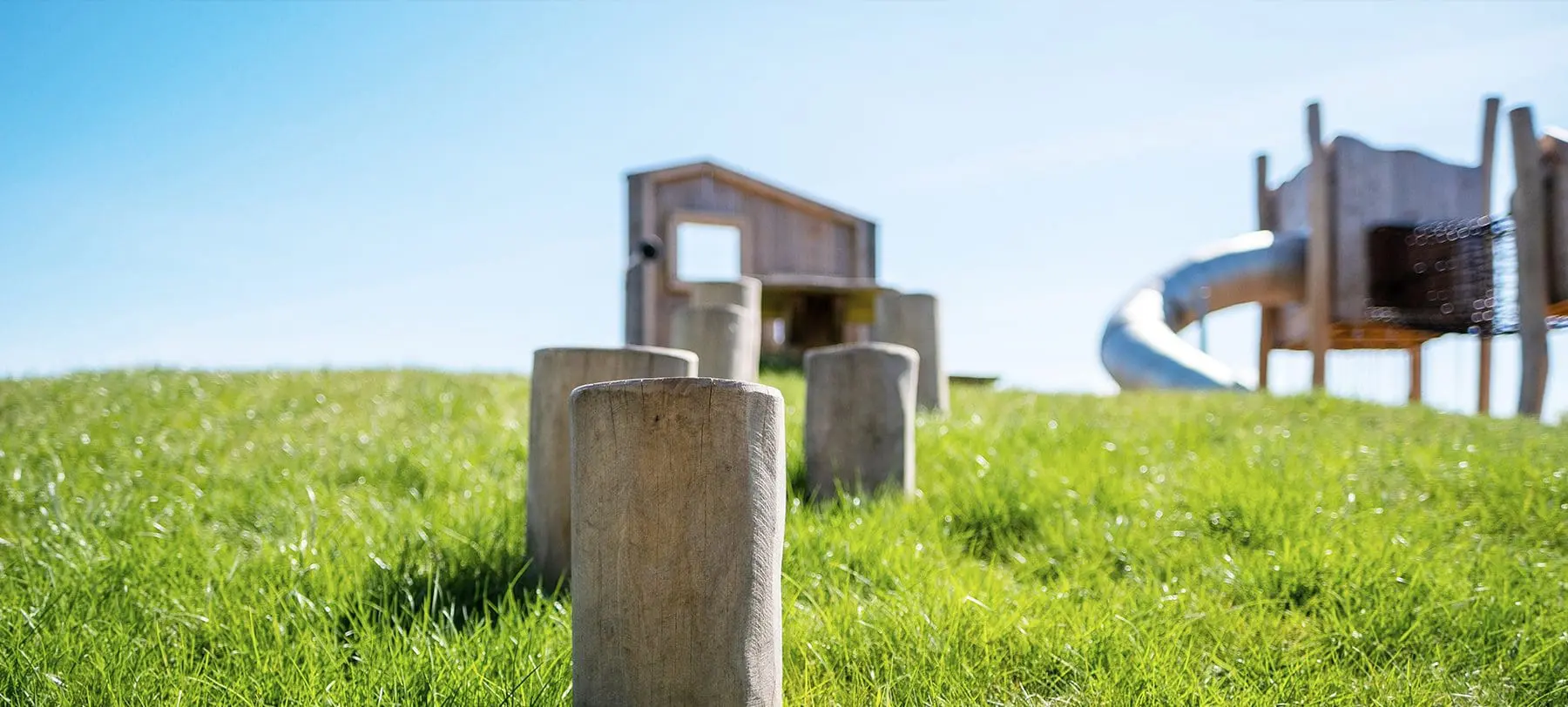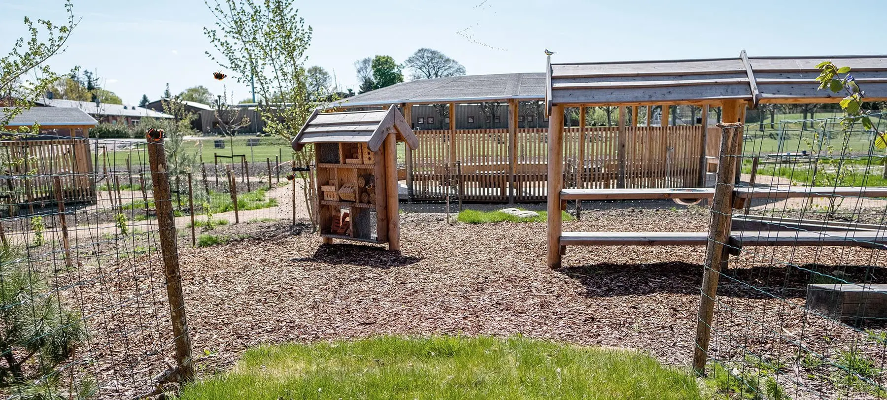 På Blovstrød barne- og læringsby har vi satt lek og natur i fokus. Lekeplassen er delt inn i fire områder: selve lekeplassen, en sansesti, et mat- og bålområde og en labyrint. Felles for dem alle er at de er skapt i en naturskjønn utforming med rik vegetasjon og et vell av ulike sanseinntrykk.