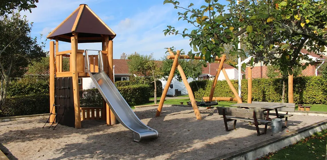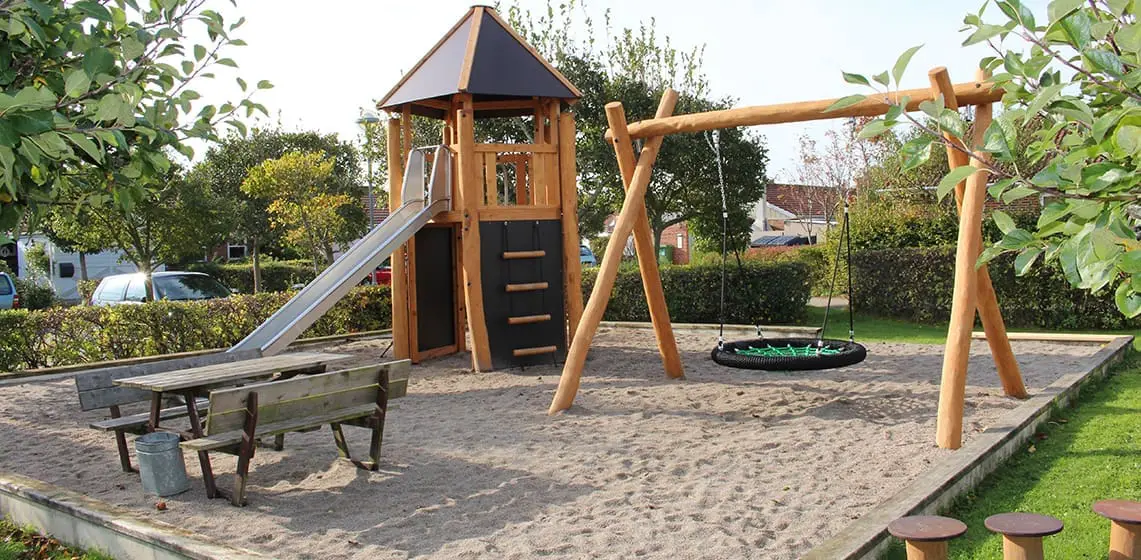 For Brandskildeparken var det især vigtigt, at den nye legeplads faldt ind i det naturskønne område. Samtidig var fokus på minimal vedligeholdelse og lang holdbarhed.