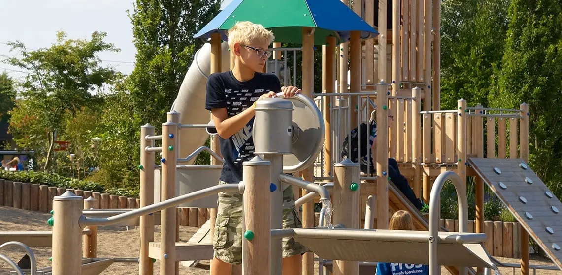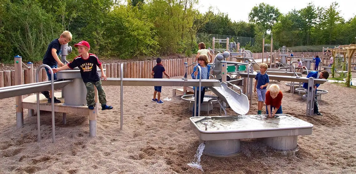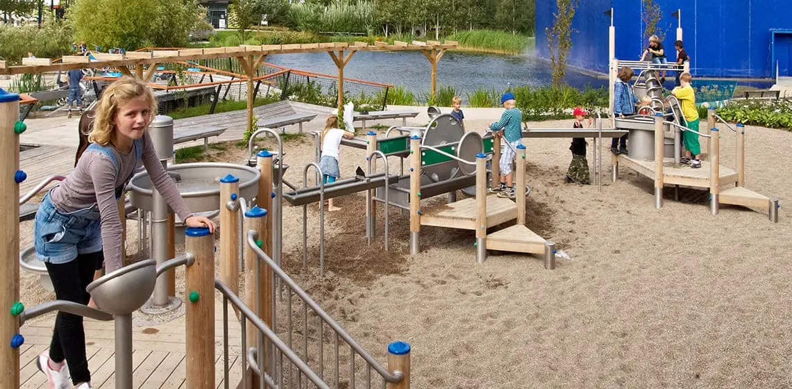 Der er både sluser, pumper og sand til de mindste, fuldt tryk på vandpistolerne til de større og masser af andre lærerige hands-on oplevelser.