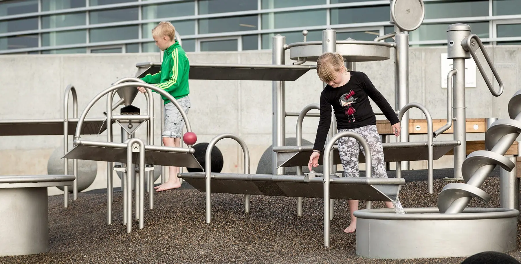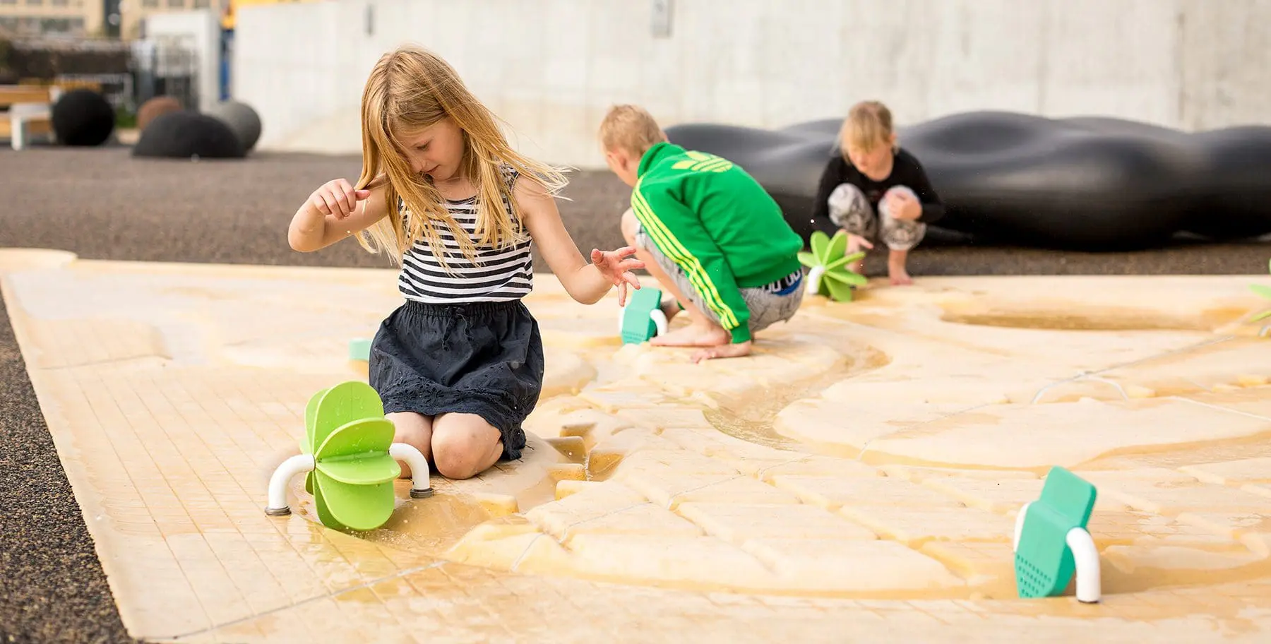 Vannlekeplasser bruker vannets magi til å skape både stor lekeverdi og læringsmuligheter. Og det gir glade barn. Produktene kommer fra våre leverandører Kaiser & Kühne og VORTEX, sistnevnte er en av verdens ledende leverandører av vannlekeplasser med mer enn 25 år i bransjen. Lekeplassene er laget med tanke på ulike aldersgrupper, med omtanke for miljøet og på en måte som minimerer vedlikeholdsbehovet og komplimenterer den vakre hovedbygningen.
