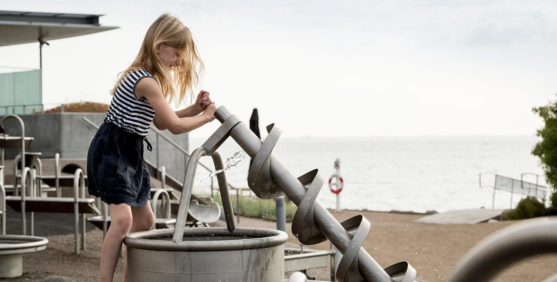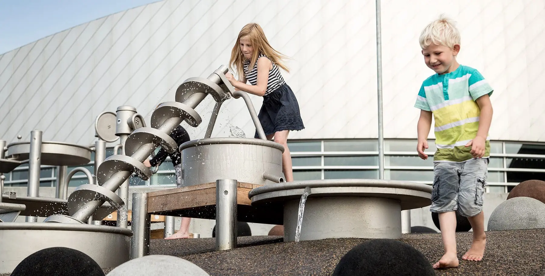 På Den Blå Planet kan du utforske og forstå vannets forunderlige verden i et trygt og inspirerende miljø. Pumper, sluser, møller og mye mer er samlet i 3 vannlekeplasser – 1 for de minste og 2 for de største. Vannlekeplassen er designet med tanke på læring og oppfordrer ikke til å bli våt, så det er ikke nødvendig med klesskift. Her kan du også slappe av med litt mat og drikke og nyte utsikten over Øresund mens barna leker og lærer.