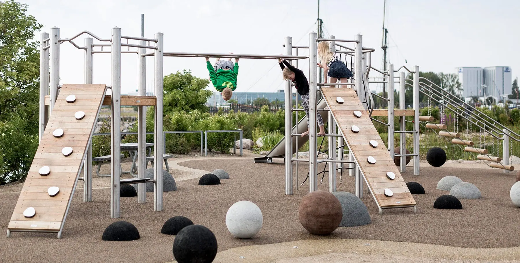 Hvis du i stedet trenger å forbrenne litt energi, har vi også installert et stort, utfordrende klatreområde uten vann, der det er mange muligheter for å klatre, krabbe, huske og skli.