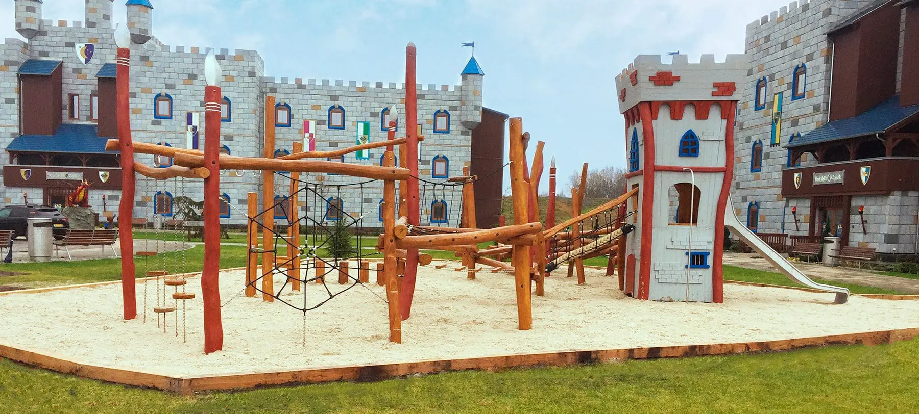Barna kan bemanne borgmurene som en av kong Arthurs stolte riddere, eller innta og stjele fra borgen som Robin Hoods lovløse venner. Det er mange innganger, utganger, snarveier og klatretårn, og det høyeste er hele 8 meter høyt.
