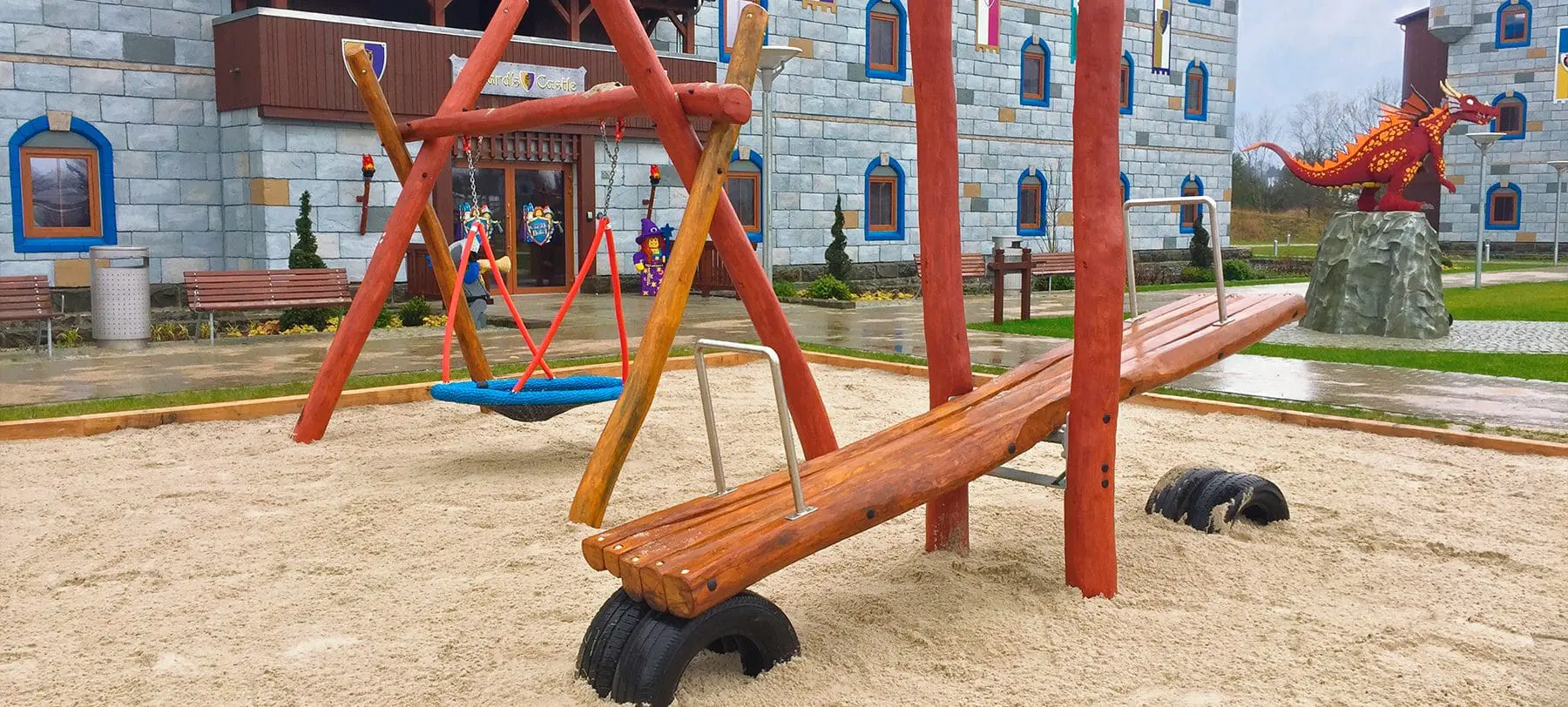 Når mamma og pappa trenger en pause etter en lang dag med eventyr og forlystelser i Legoland, kan barna leke i det nye slottet utenfor det fantasifulle Legoland Castle Hotel. Slottet har tema etter hotellets middelalderske, legolignende eksteriør og er laget i samarbeid med vår faste og herlig finurlige leverandør Spielart.