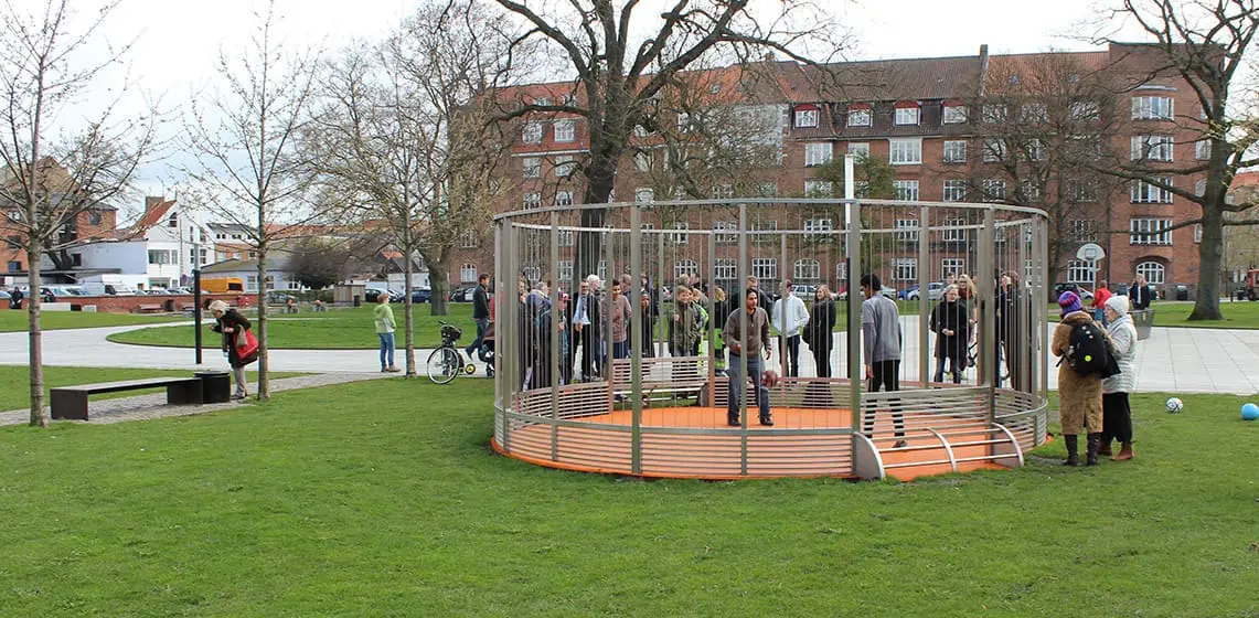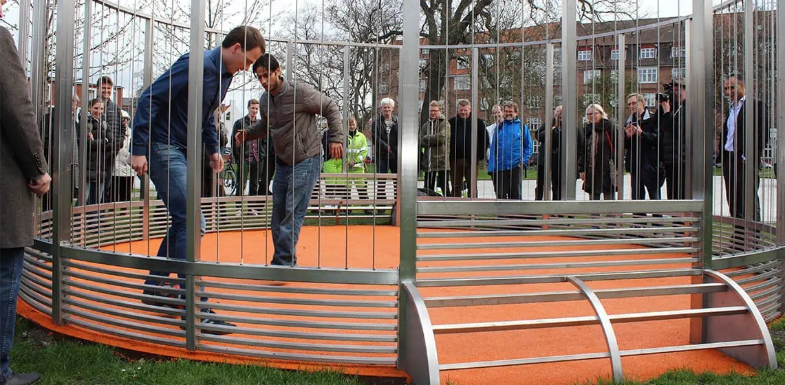 Århus Kommune ønskede at skabe nye rammer for boldspil i Mølleparken. Kommunen havde krav om, at boldbanen skulle være vedligeholdelsesfri, vandalsikker, støjsvag og yderligere have minimale driftsomkostninger.