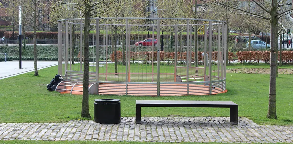 Banens transparente design respekterer de grønne omgivelser og skaber kontakt mellem spillere og tilskuere og samtidig signalerer den bevægelighed og dynamik.