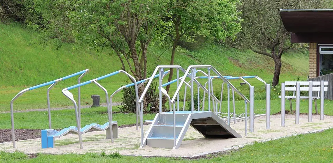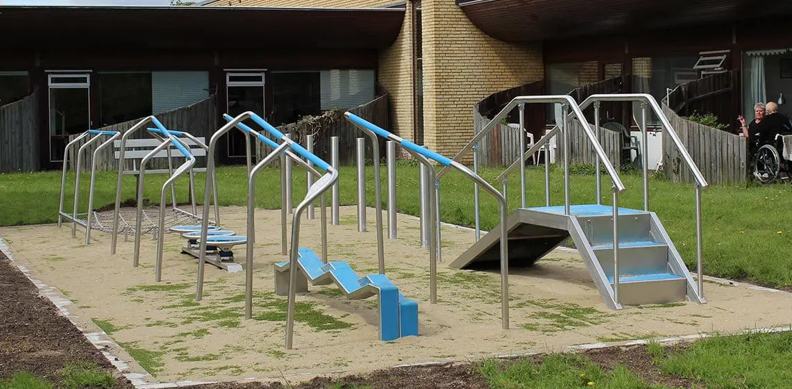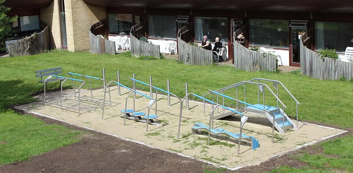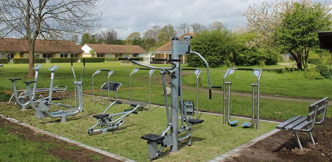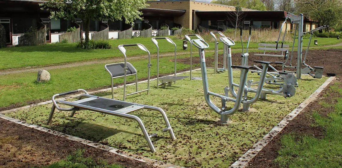 Vi har designet og etablert to toppmoderne utendørs trenings- og treningsområder for Poppelgården. Treningsutstyret er plassert på et vakkert kunstgressteppe og kan brukes året rundt. De to områdene brukes til kondisjonstrening, styrketrening for hele kroppen og balanse- og koordinasjonstrening.